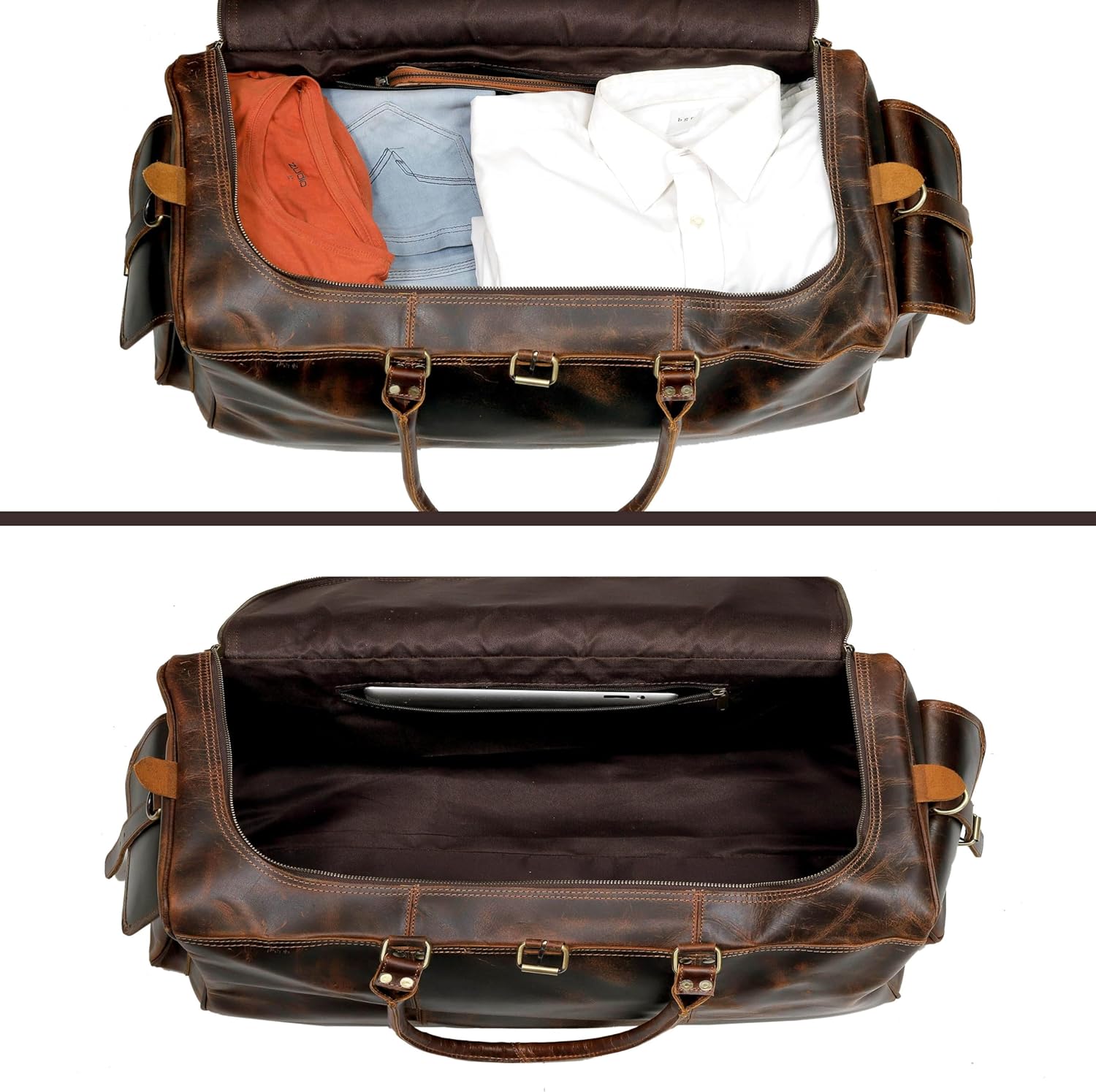 - Sturdy Construction: Crafted from top-grain Italian leather, this duffle is built to last for years of travel.