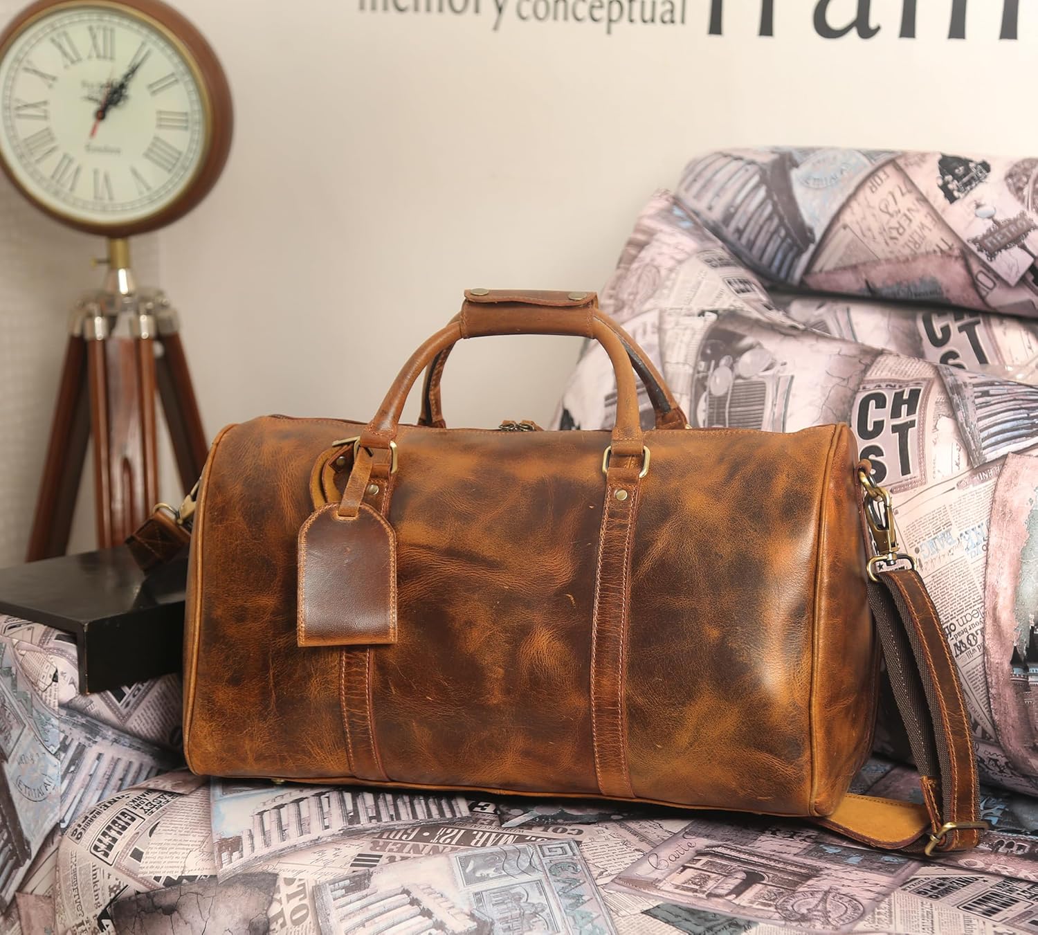 - STYLISH VINTAGE BAG: -Our stylish and practical weekender bag has many carry-on styles. (1) Luggage Tote Bag---The canvas hand straps are wrapped with soft leather making it easily grasp and comfortably carry. (2) Crossbody Bag---The shoulder strap is adjustable and detachable so carry it over your shoulder is more convenient to use. (3) The Two Side Straps are useful when the heavy stuff is fully fit so it needs two people to carry, and to share the bearing weight together.