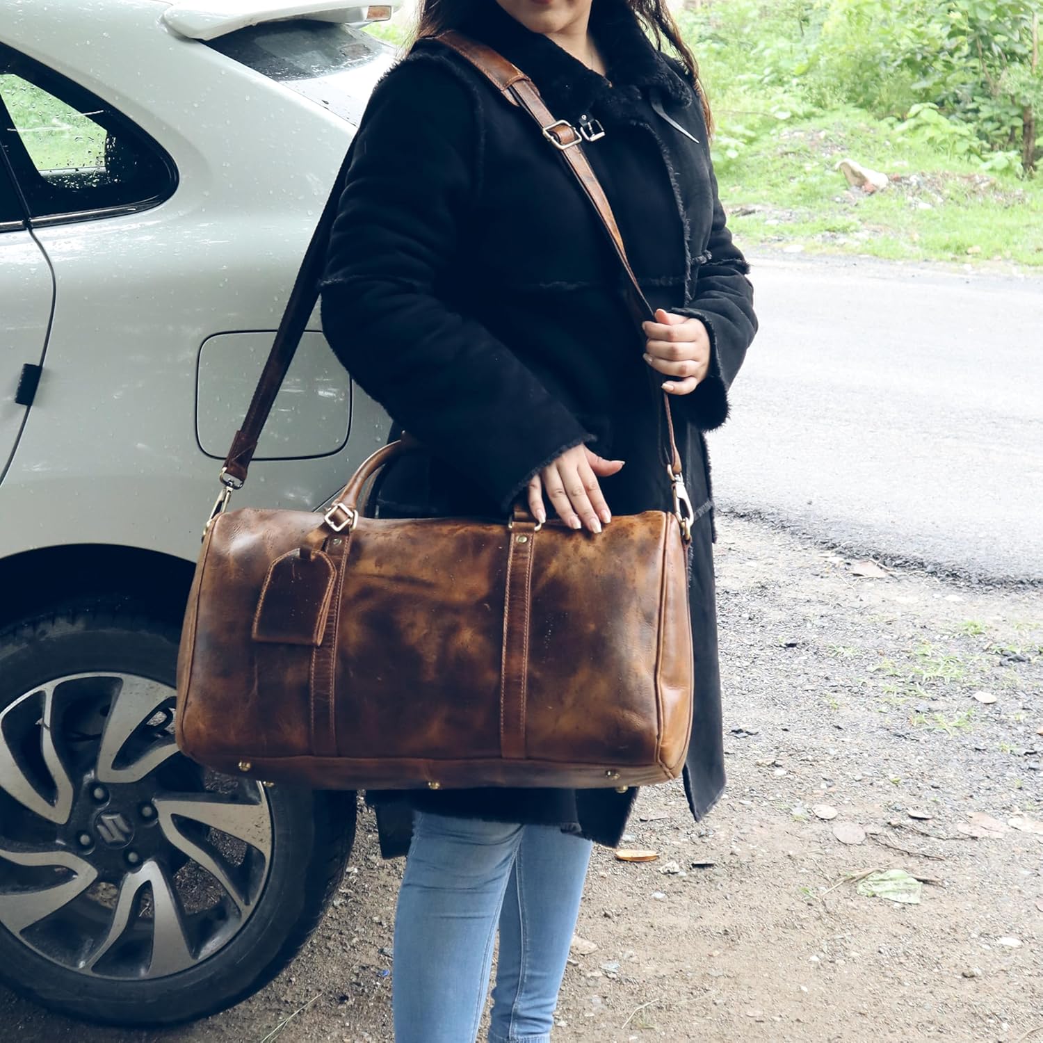 - HIGH-QUALITY MATERIAL: - Our Duffel Made of natural thick genuine Buffalo leather. We use Buffalo leather that gains character as it ages. Our Weekender Travel Duffel is made to stand up to whatever you’ll throw at it over the years.